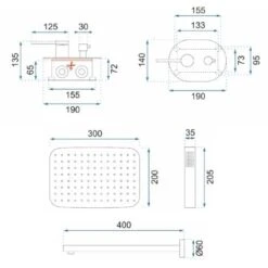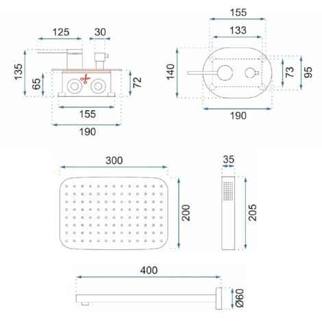 - Incluso: rubinetto da incasso, soffione doccia, braccio soffione doccia, Tubo 1500 mm, doccetta, supporto per doccetta, copertura