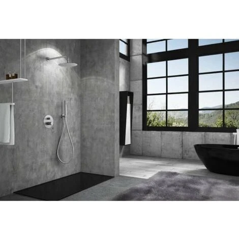 Il soffione doccia è in acciaio inox, tondo, extrapiatto e anticalcare; e ha un diametro di 25 cm.