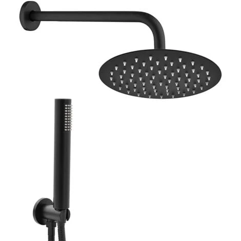 Set doccia tondo nero opaco – completo di soffione 30 cm, braccio da 33 cm e doccetta con presa acqua e flessibile