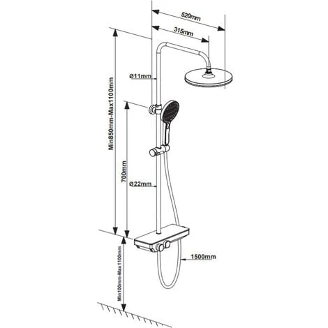 - Colonna doccia regolabile in altezza da 85 a 110 cm