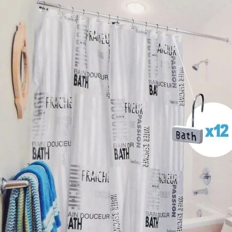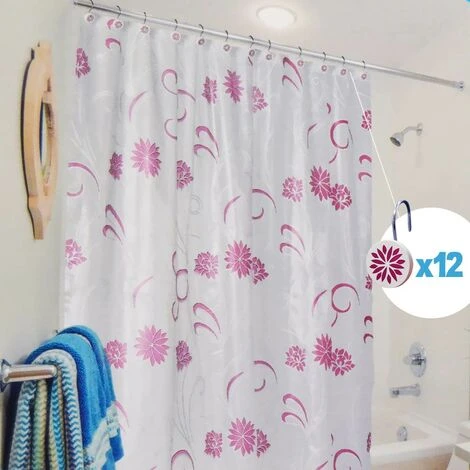 Ogni tenda ਠfornita di 12 ganci decorativi che uniti alla tenda fungono da decorazione per qualsiasi bagno.
