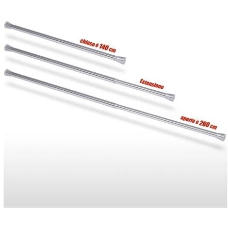La Barra Telescopica Per Tenda Da Doccia è Montabile A Parete Ed è Adatta Per Bagni. Grazie Alla Sua Duttilità Può Essere Utilizzata Anche Come Guardaroba, Asta Appendiabiti O Come Separatore In Una Stanza. La Barra è Estensibile Da 140 Cm Fino A 260 Cm. Il Suo Diametro è 2,2 Cm. Il Montaggio è Facile, Senza Viti E Trapanatura.specifiche Prodotto:dimensioni: 140 Cm Estensibile Fino A 260 Cmdiametro: 2,2 Cmcolore: Alluminio Biancocontenuto Della Confezione:1 Pezzo Barra Telescopica 140 Cm Fino A 260 Cm Per Tenda Da Doccia Alluminio Bianco