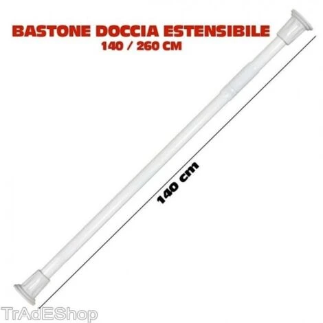 Trade Shop – Bastone Asta Telescopica Per Doccia Tenda Armadio Estensibile Da 140 A 260 Cm